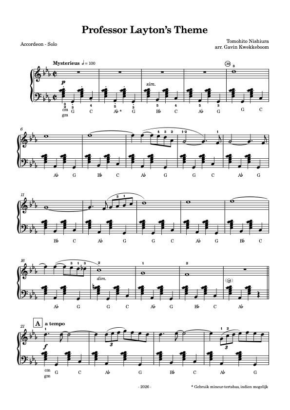 Voor deze arrangementen is echter alleen een preview van de partituur beschikbaar. Voor aankoop van de volledige partituur inclusief individuele partijen, gelieve contact op te nemen via info@accordeonaanhuis.nl.